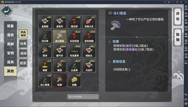 又是一个比上不足比下有余的草,如果吃的话,一般是在战斗中段吃的,稍微回回血,附带一个30%的攻击加成,但是这个效果又有些单薄,就攻击力而言尚不如凌雪吃毒蘑菇,不过吃了这个倒是晕不了了,但是副本boss又有谁是打晕的呢,我能记起来的就只有一个坟堆的荆轲幻影了,鸡肋啊鸡肋啊