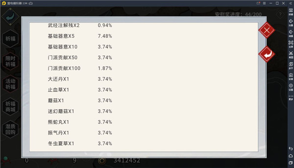 5、随后安稳推主线,打不过就练级,练到40级的时候,开放武学参演首先参演主修的武学和主修的心法,升到50级。材料不够就去江湖贡献商店买,每天会刷100本,买满,副修心法参到40即可,副修武学参满最好。