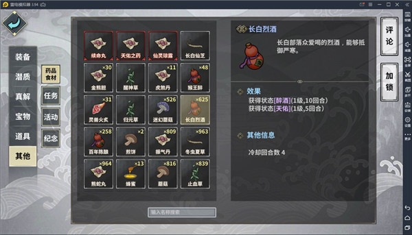 这个是三大酒类中的最后一个,也是我个人认为效果最好的酒类,它是唯一一个除了天佑之药之外提供天佑状态的药品,同时提供极长时间的醉酒状态,冷却时间中规中矩,没错,我就是馋他的天佑,多少boss心狠手辣得给你上各种糟心的debuff,一发长白就完全可以解决,而且他的获取难度极低,可以通过挂机,钓鱼,开箱子,地窖探索获得,所以你看着我这玩意很多,不代表这个不强
