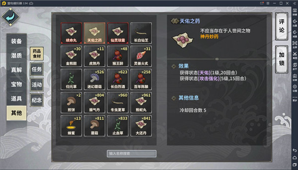 果然是民间药材,这个在游戏中基本上是用不到的,从我的药品数量就能看得出来,几乎要破千了,少许的生命,仅仅移除一个负面,CD冷却却达到了4个回合,估计也就只有江湖郎中用这个了吧。