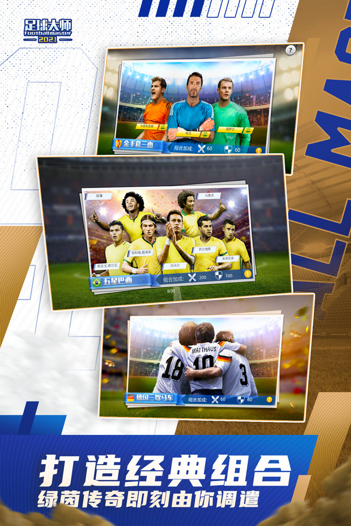 足球大师黄金一代福利版手游获得多家欧洲豪门官方授权,收录5000名真实球员数据的足球经营模拟游戏。采用全3D物理引擎打造赛事画面,精准还原马赛回旋、蝎子摆尾、Tiki-Taka传控、过顶直塞等经典技术动作。跨越时代的传奇球星齐聚绿茵场——梅西、C罗、齐达内、亨利、罗纳尔多等巨星任您调遣,构建专属梦幻阵容。这里不仅有璀璨球星与热血竞技,更承载着无数球迷的青春记忆!