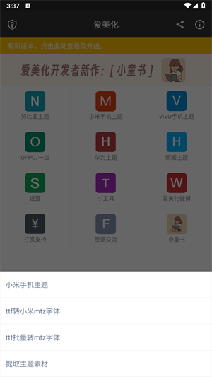 2、当打开小米主题时,支持转字体、建主题等等。