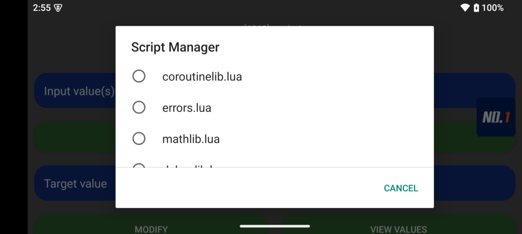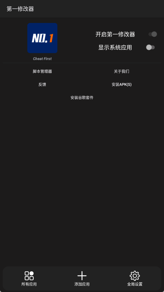 3、【设置页面】你需要在开始游戏之前启用第一个作弊组件。你也可以在设置页面找到脚本管理器,你可以添加或管理导入的脚本,如果你想删除所有脚本,只需长按添加按钮。