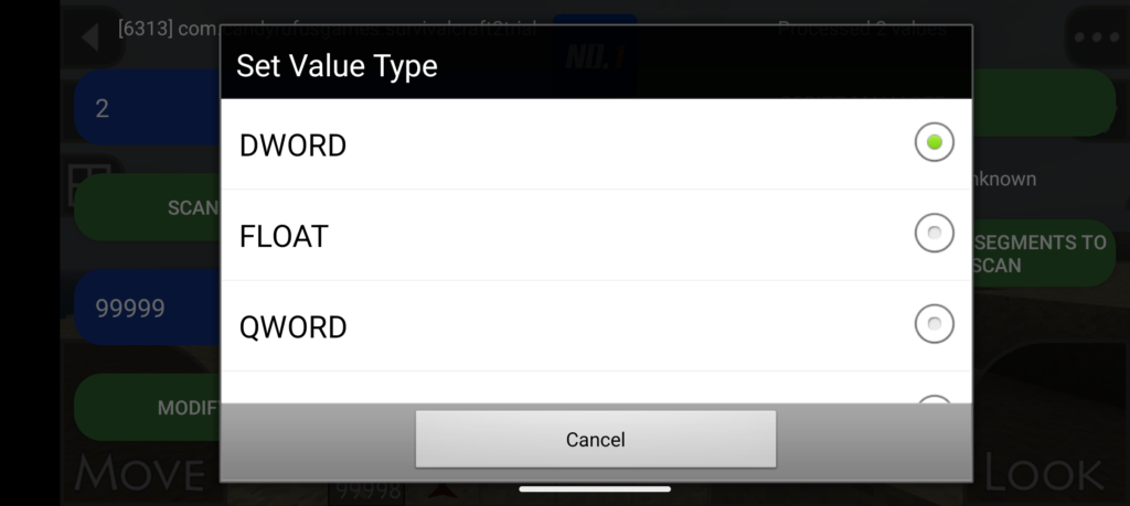 14、【冻结并查看值】如果在大约5次搜索后无法获得实际值,您可以将值类型更改为浮点数或双精度浮点数,您可以通过点击“设置值类型”按钮来更改值类型。