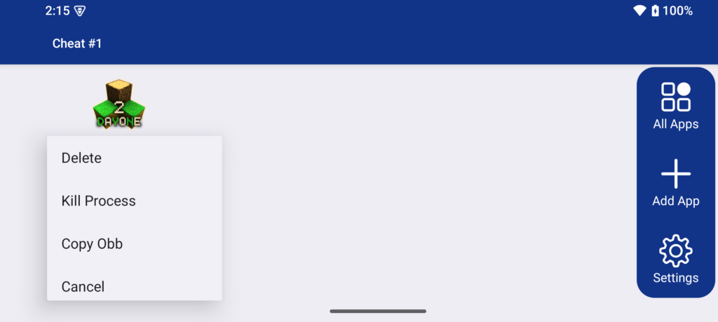 -----启用作弊组件后,您可以返回“所有应用”页面并启动特定应用程序。如果您的应用程序包含obb文件(一些游戏如PUBGM和BGMI需要额外的obb文件),您可以长按应用程序图标,然后选择复制obb选项。