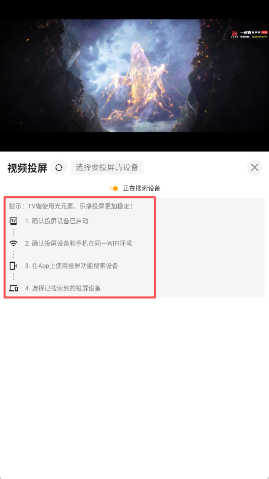 4、注意要确认电视和手机连接到同一wifi,下面的投屏说明可以看下,避免失败