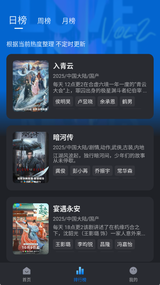 3、排行榜可以看每日每个月的评分以及观看人数最多的影片,帮助用户做一个推荐!